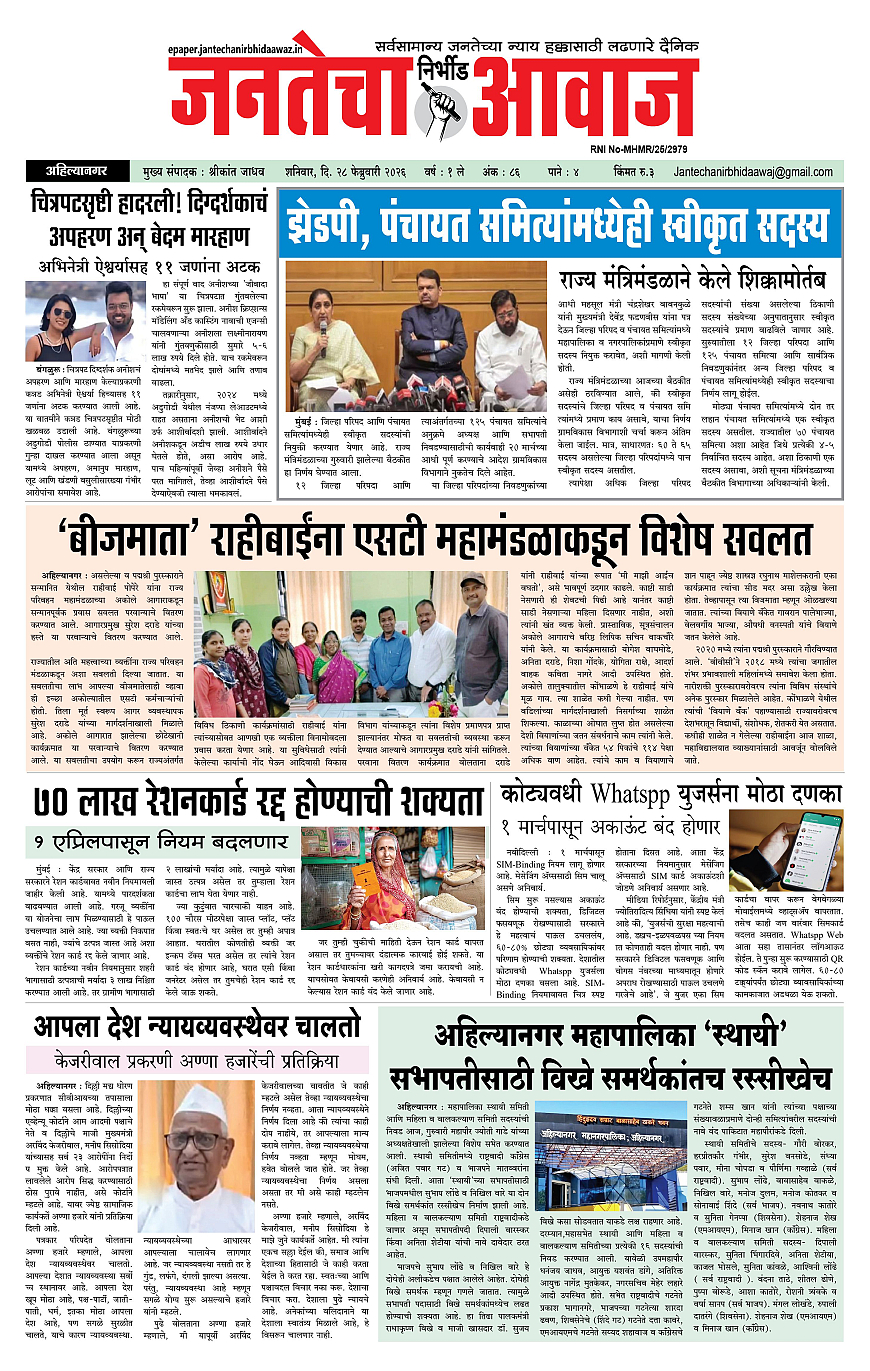 Jantecha Aawaj February 28, 2026 Ahilyanagar-maharashtra 1 2 3 4 पृष्ठ 1पृष्ठ 2पृष्ठ 3पृष्ठ 4 × Jantecha Aawaj 1-41-421-431-44 << पहला << 1 >> आखिरी >> Page no 1Page no 2Page no 3Page no 4