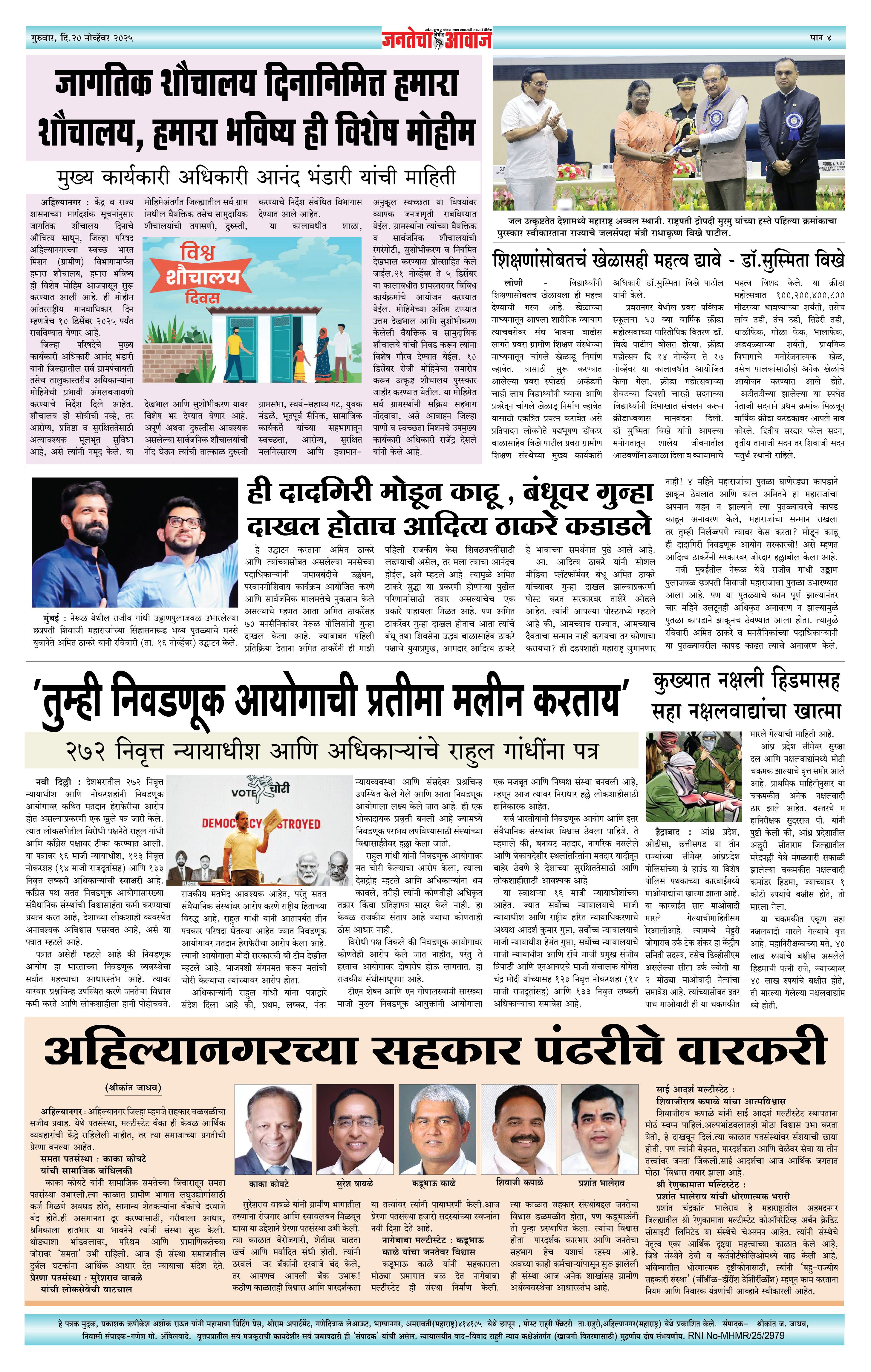 Jantecha Aawaj पृष्ठ: 4 November 20, 2025 Ahilyanagar-maharashtra 1 2 3 4 पृष्ठ 1पृष्ठ 2पृष्ठ 3पृष्ठ 4 × Jantecha Aawaj janta AAwaj 1-4 Newjanta AAwaj 1-4 New2janta AAwaj 1-4 New3janta AAwaj 1-4 New4 << पहला << 4 >> आखिरी >> Page no 1Page no 2Page no 3Page no 4