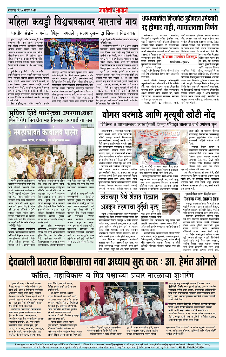 Jantecha Aawaj पृष्ठ: 4 November 25, 2025 Ahilyanagar-maharashtra 1 2 3 4 पृष्ठ 1पृष्ठ 2पृष्ठ 3पृष्ठ 4 × Jantecha Aawaj 1-42-21-431-44 << पहला << 4 >> आखिरी >> Page no 1Page no 2Page no 3Page no 4