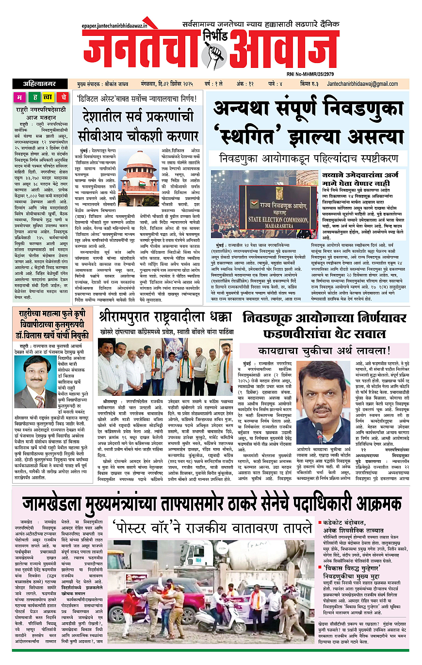 Jantecha Aawaj December 02, 2025 Ahilyanagar-maharashtra 1 2 3 4 पृष्ठ 1पृष्ठ 2पृष्ठ 3पृष्ठ 4 × Jantecha Aawaj 1-41-421-431-44 << पहला << 1 >> आखिरी >> Page no 1Page no 2Page no 3Page no 4