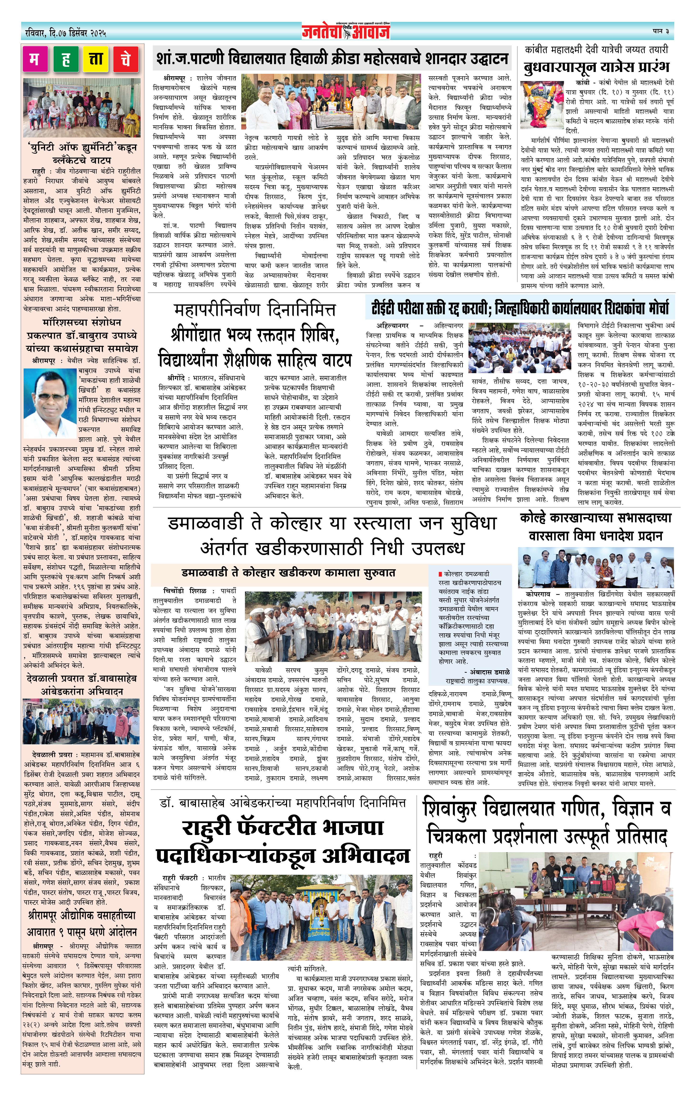 Jantecha Aawaj पृष्ठ: 3 December 07, 2025 Ahilyanagar-maharashtra 1 2 3 4 पृष्ठ 1पृष्ठ 2पृष्ठ 3पृष्ठ 4 × Jantecha Aawaj 1-41-421-431-44 << पहला << 3 >> आखिरी >> Page no 1Page no 2Page no 3Page no 4