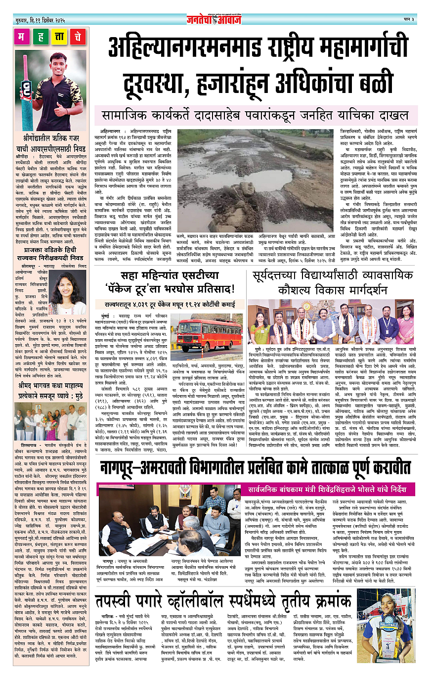 Jantecha Aawaj पृष्ठ: 3 December 11, 2025 Ahilyanagar-maharashtra 1 2 3 4 पृष्ठ 1पृष्ठ 2पृष्ठ 3पृष्ठ 4 × Jantecha Aawaj 1-41-421-431-44 << पहला << 3 >> आखिरी >> Page no 1Page no 2Page no 3Page no 4