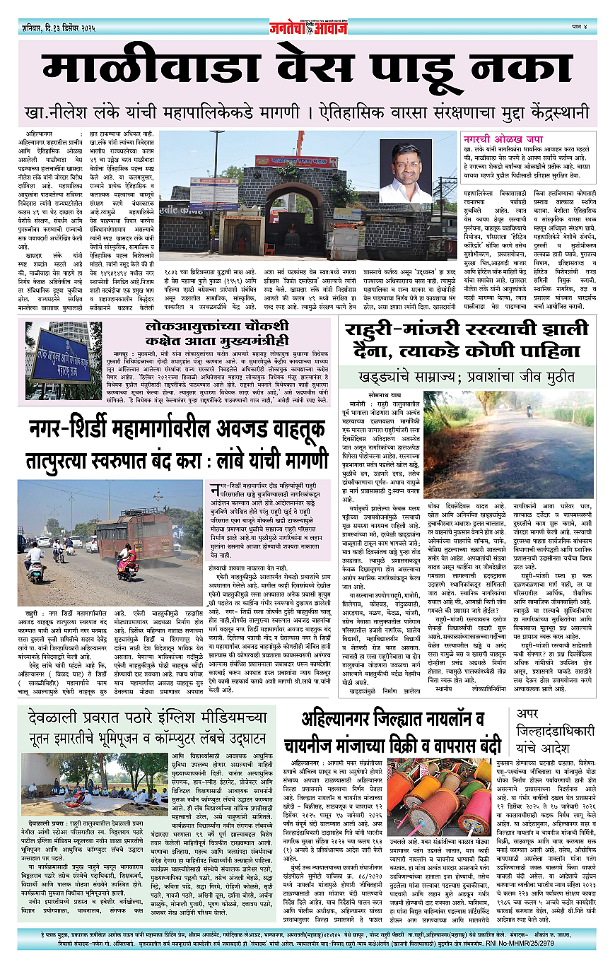 Jantecha Aawaj पृष्ठ: 4 December 13, 2025 Ahilyanagar-maharashtra 1 2 3 4 पृष्ठ 1पृष्ठ 2पृष्ठ 3पृष्ठ 4 × Jantecha Aawaj 1-41-421-431-44 << पहला << 4 >> आखिरी >> Page no 1Page no 2Page no 3Page no 4