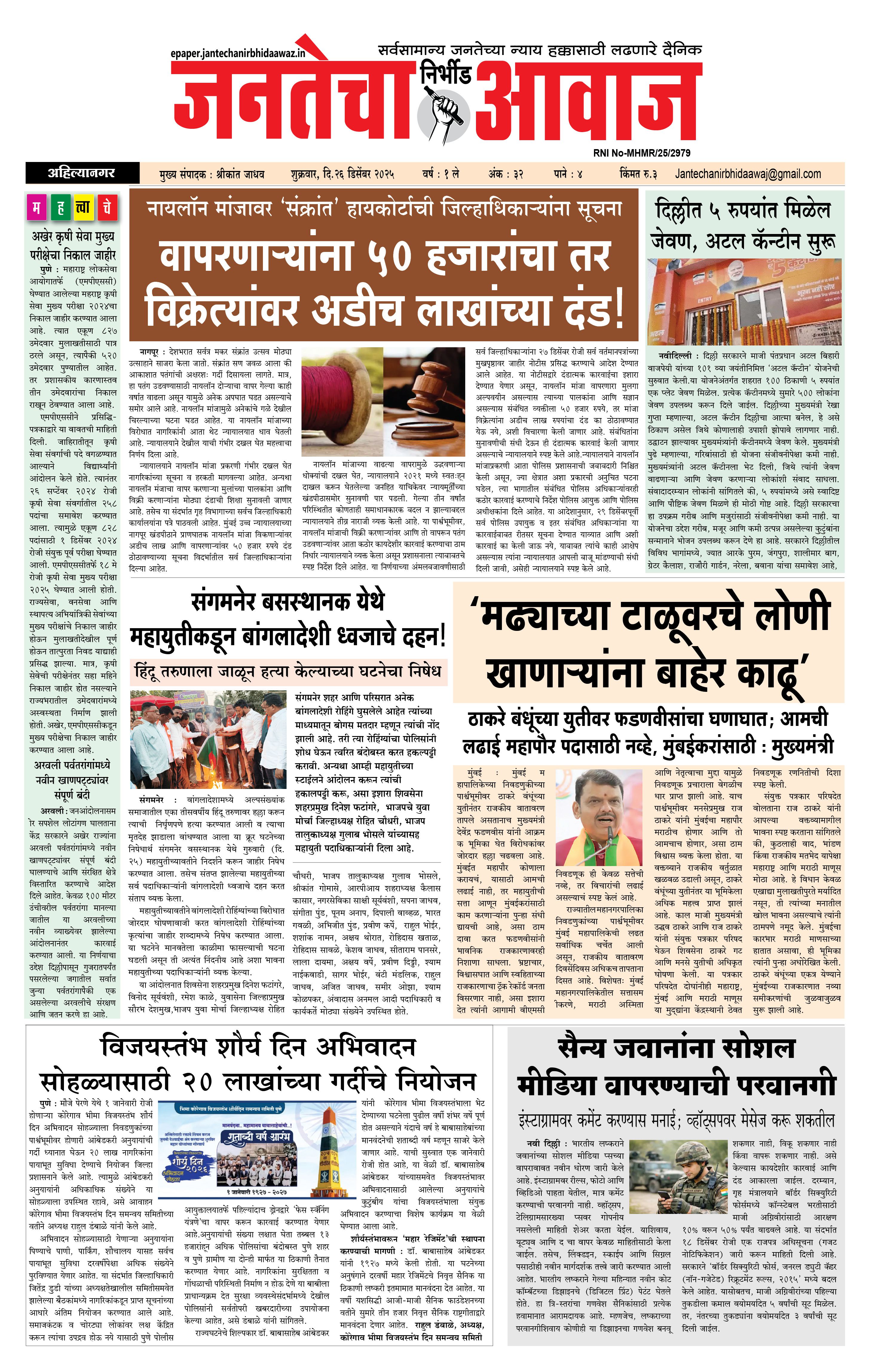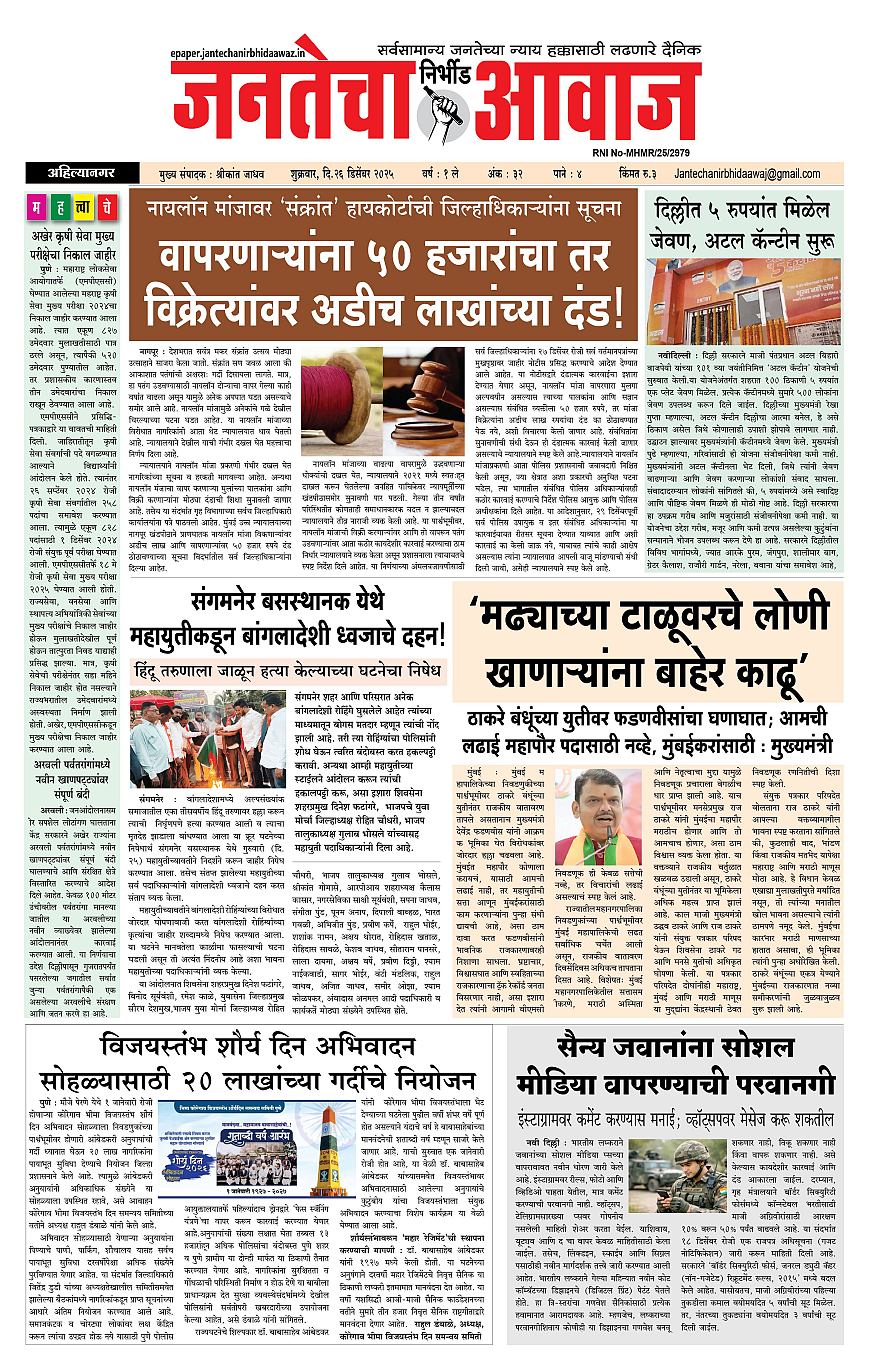 Jantecha Aawaj December 26, 2025 Ahilyanagar-maharashtra 1 2 3 4 पृष्ठ 1पृष्ठ 2पृष्ठ 3पृष्ठ 4 × Jantecha Aawaj 1-41-421-4344 << पहला << 1 >> आखिरी >> Page no 1Page no 2Page no 3Page no 4