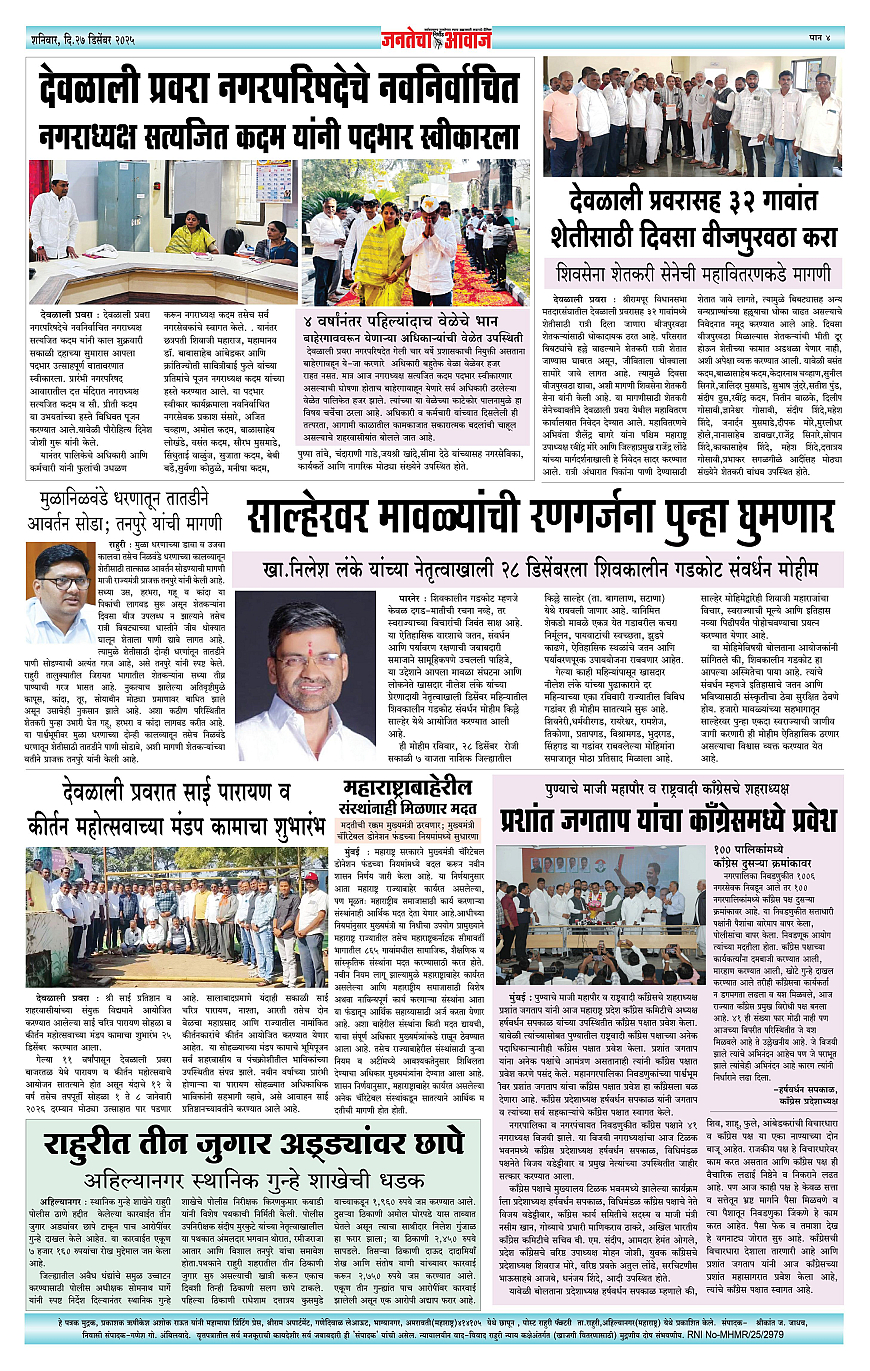 Jantecha Aawaj पृष्ठ: 4 December 27, 2025 Ahilyanagar-maharashtra 1 2 3 4 पृष्ठ 1पृष्ठ 2पृष्ठ 3पृष्ठ 4 × Jantecha Aawaj 1-41-421-431-44 << पहला << 4 >> आखिरी >> Page no 1Page no 2Page no 3Page no 4