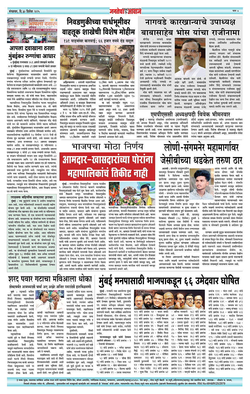 Jantecha Aawaj पृष्ठ: 4 December 30, 2025 Ahilyanagar-maharashtra 1 2 3 4 पृष्ठ 1पृष्ठ 2पृष्ठ 3पृष्ठ 4 × Jantecha Aawaj 1-41-421-431-44 << पहला << 4 >> आखिरी >> Page no 1Page no 2Page no 3Page no 4