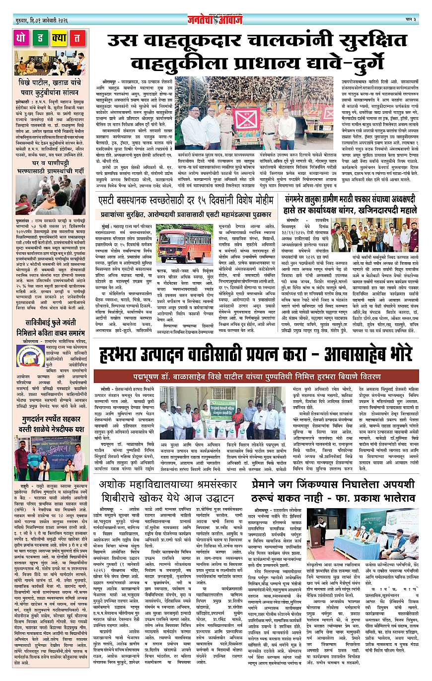 Jantecha Aawaj पृष्ठ: 3 January 01, 2026 Ahilyanagar-maharashtra 1 2 3 4 पृष्ठ 1पृष्ठ 2पृष्ठ 3पृष्ठ 4 × Jantecha Aawaj 1123314 << पहला << 3 >> आखिरी >> Page no 1Page no 2Page no 3Page no 4
