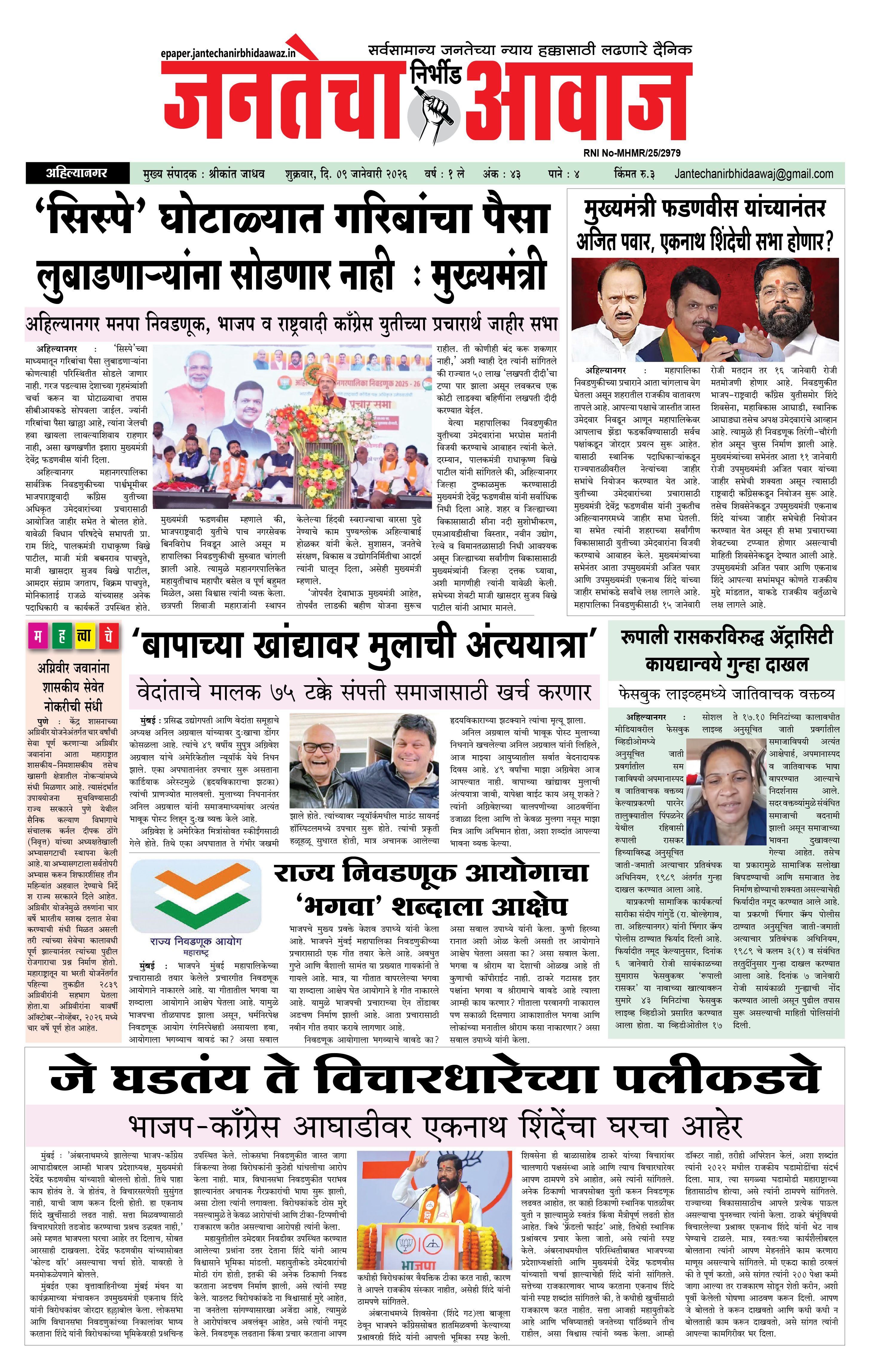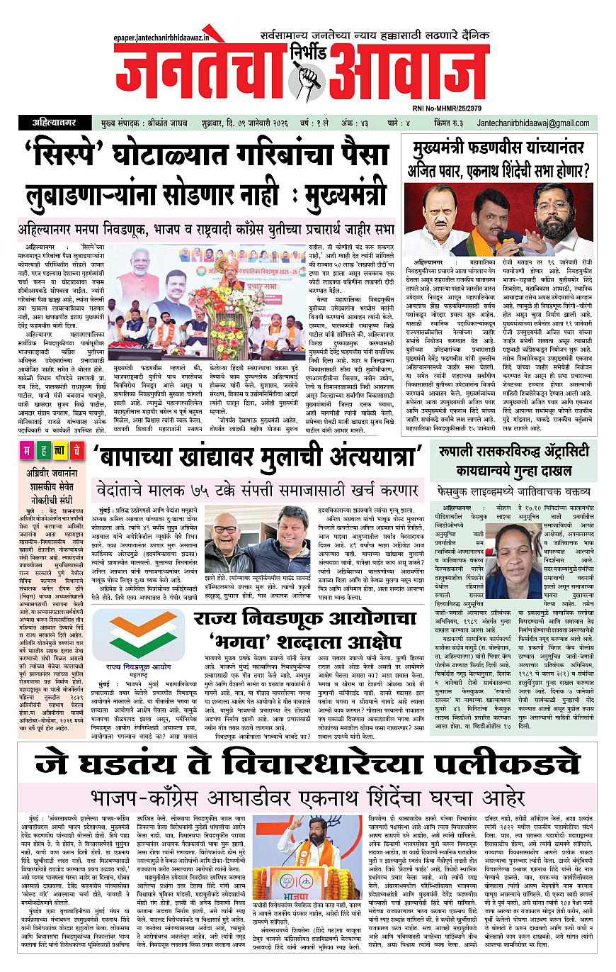 Jantecha Aawaj January 09, 2026 Ahilyanagar-maharashtra 1 2 3 4 पृष्ठ 1पृष्ठ 2पृष्ठ 3पृष्ठ 4 × Jantecha Aawaj 1-41-421-431-44 << पहला << 1 >> आखिरी >> Page no 1Page no 2Page no 3Page no 4