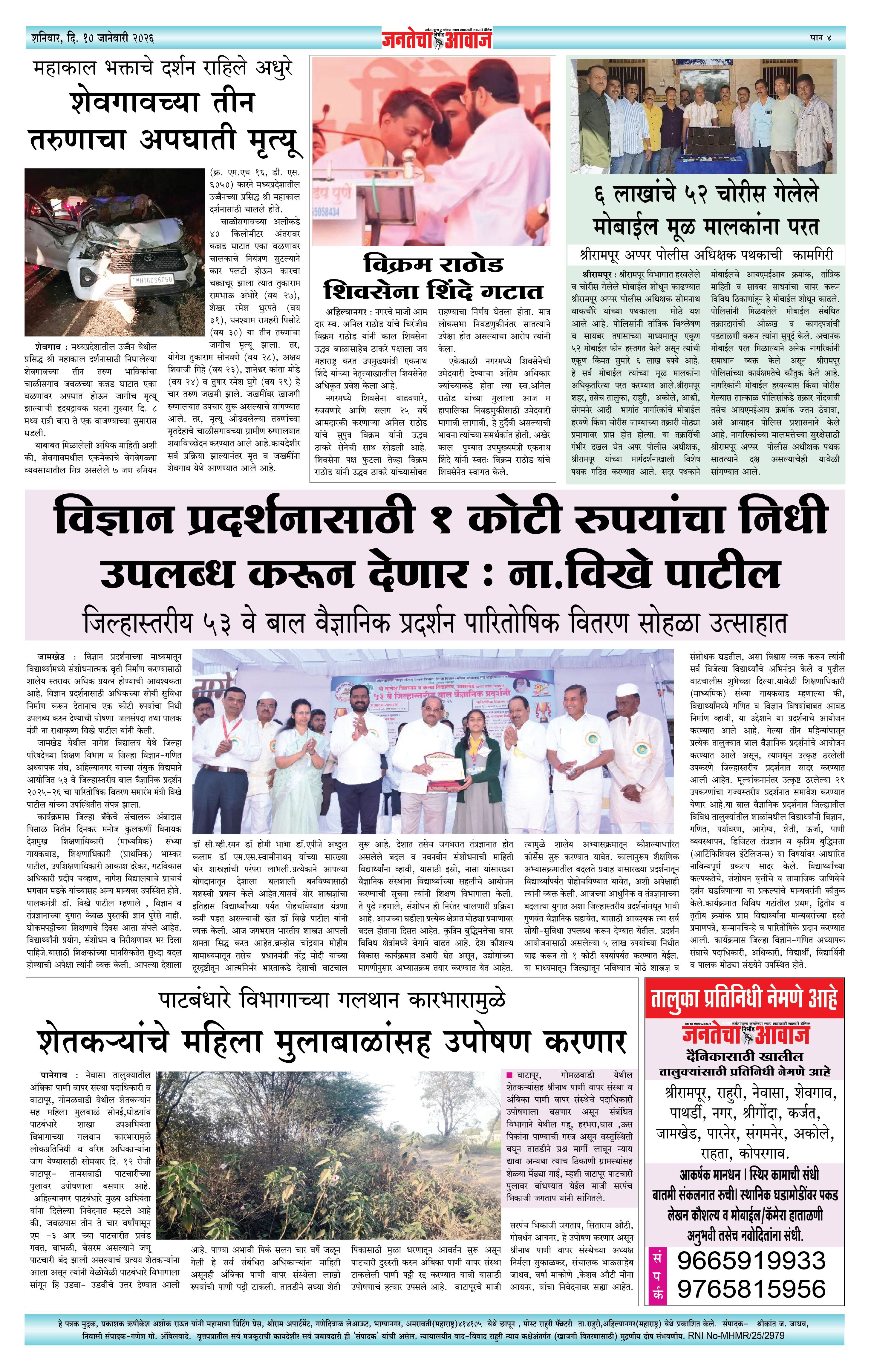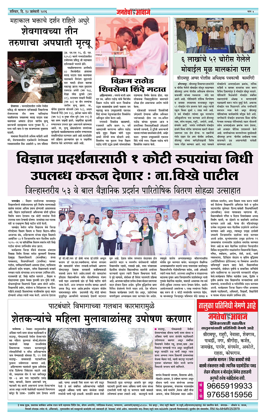Jantecha Aawaj पृष्ठ: 4 January 10, 2026 Ahilyanagar-maharashtra 1 2 3 4 पृष्ठ 1पृष्ठ 2पृष्ठ 3पृष्ठ 4 × Jantecha Aawaj 111-421-431-44 << पहला << 4 >> आखिरी >> Page no 1Page no 2Page no 3Page no 4