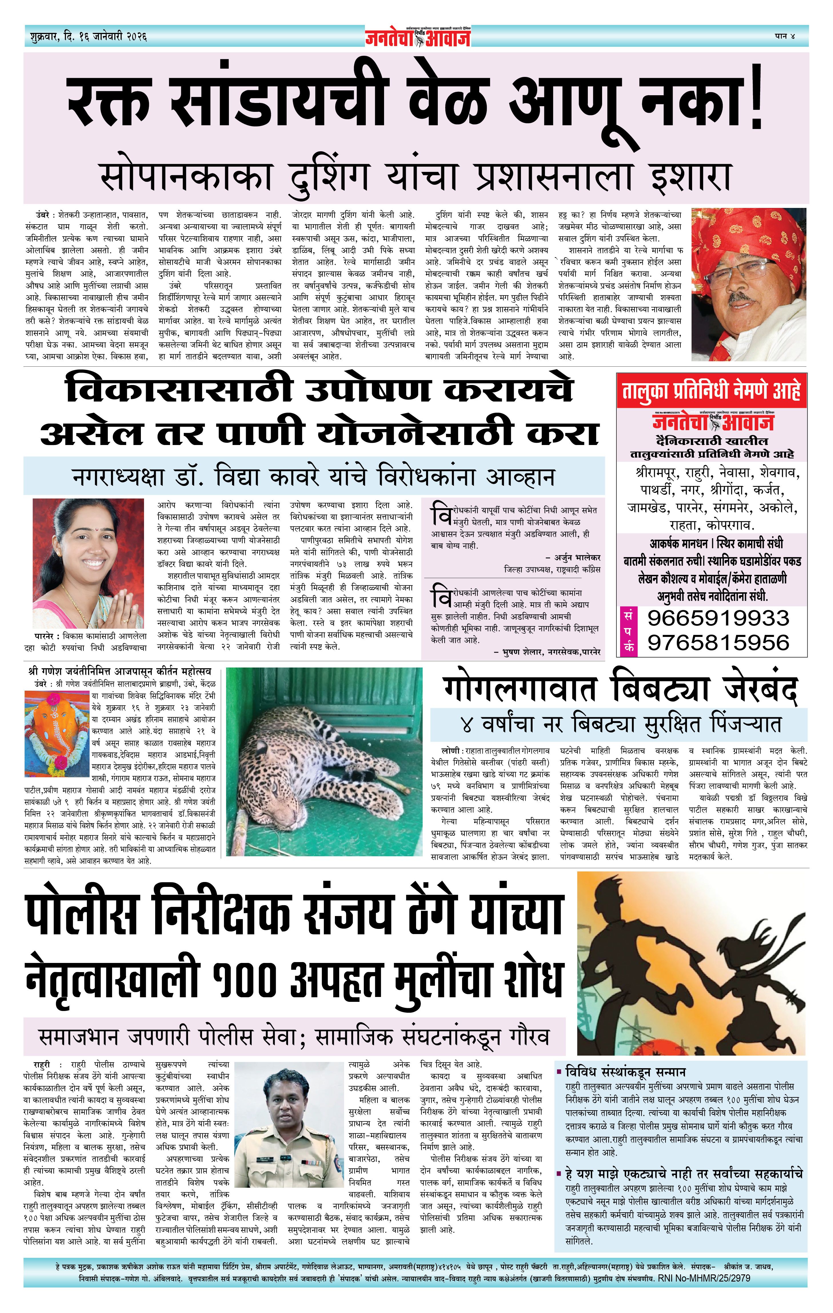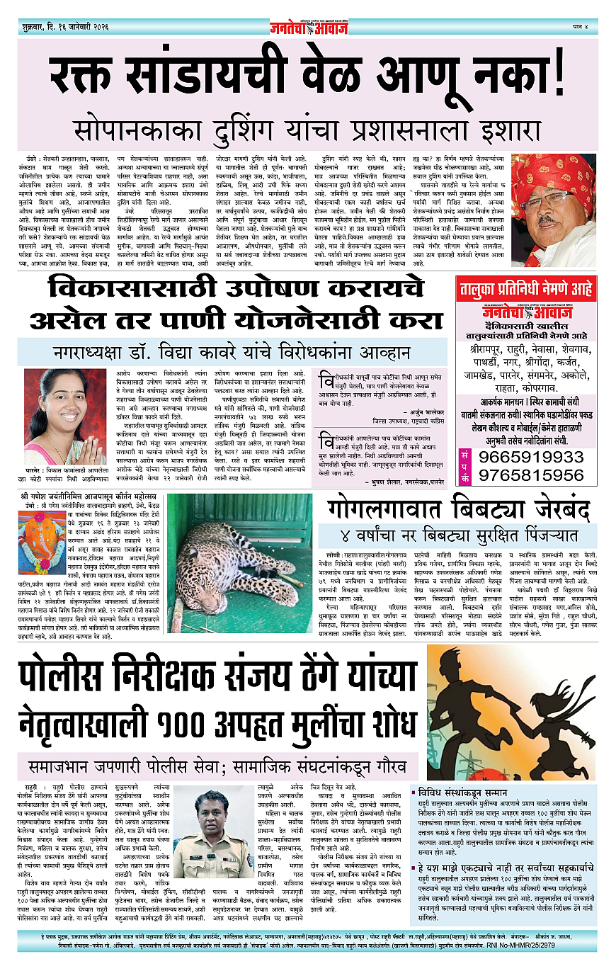 Jantecha Aawaj पृष्ठ: 4 January 16, 2026 Ahilyanagar-maharashtra 1 2 3 4 पृष्ठ 1पृष्ठ 2पृष्ठ 3पृष्ठ 4 × Jantecha Aawaj 1-41-421-431-44 << पहला << 4 >> आखिरी >> Page no 1Page no 2Page no 3Page no 4