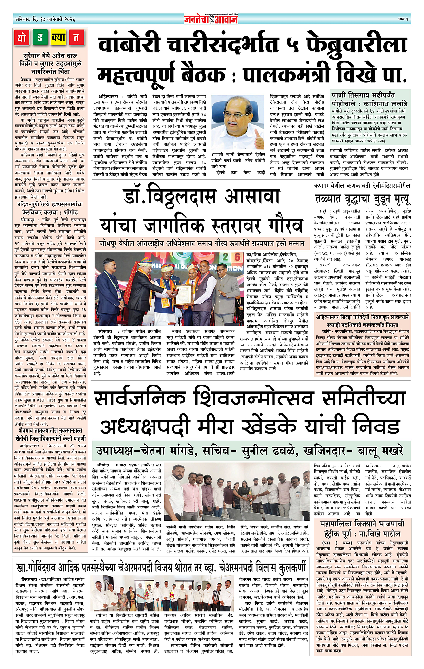 Jantecha Aawaj पृष्ठ: 3 January 17, 2026 Ahilyanagar-maharashtra 1 2 3 4 पृष्ठ 1पृष्ठ 2पृष्ठ 3पृष्ठ 4 × Jantecha Aawaj 1234 << पहला << 3 >> आखिरी >> Page no 1Page no 2Page no 3Page no 4