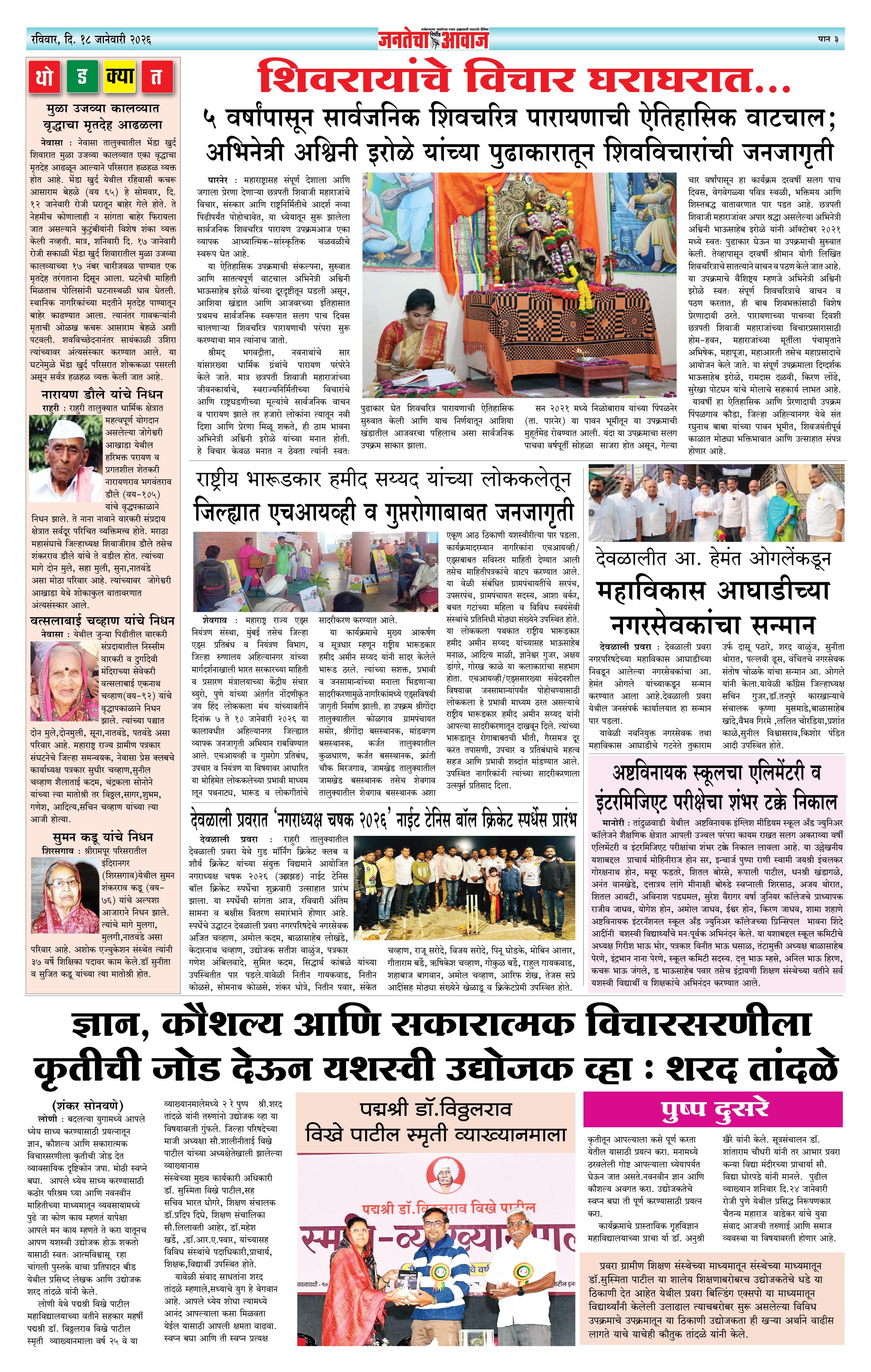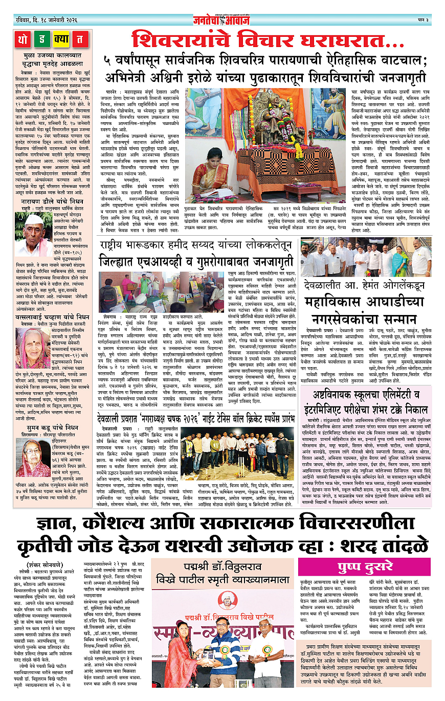 Jantecha Aawaj पृष्ठ: 3 January 18, 2026 Ahilyanagar-Pune-Nashik-shrirampur maharashtra 1 2 3 4 पृष्ठ 1पृष्ठ 2पृष्ठ 3पृष्ठ 4 × Jantecha Aawaj 1-41-421-431-44 << पहला << 3 >> आखिरी >> Page no 1Page no 2Page no 3Page no 4