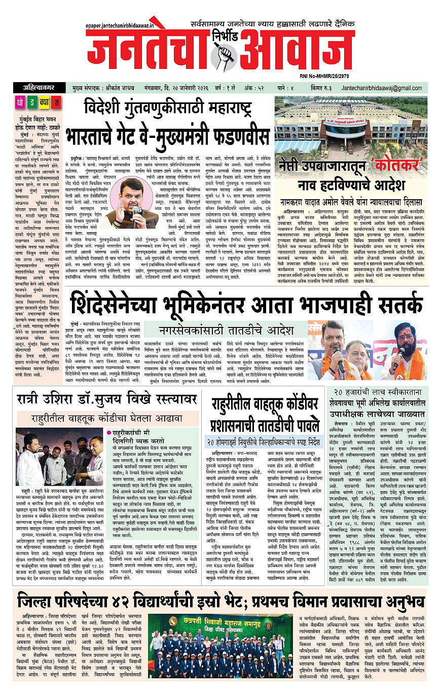 Jantecha Aawaj January 20, 2026 Ahilyanagar-maharashtra 1 2 3 4 पृष्ठ 1पृष्ठ 2पृष्ठ 3पृष्ठ 4 × Jantecha Aawaj 1-41-421-431-44 << पहला << 1 >> आखिरी >> Page no 1Page no 2Page no 3Page no 4