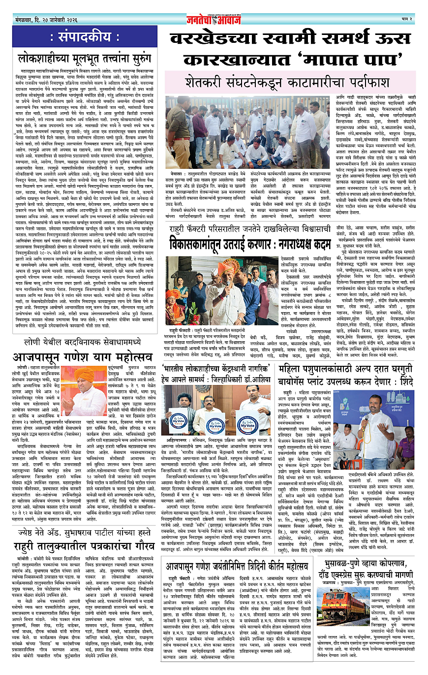 Jantecha Aawaj पृष्ठ: 2 January 20, 2026 Ahilyanagar-maharashtra 1 2 3 4 पृष्ठ 1पृष्ठ 2पृष्ठ 3पृष्ठ 4 × Jantecha Aawaj 1-41-421-431-44 << पहला << 2 >> आखिरी >> Page no 1Page no 2Page no 3Page no 4