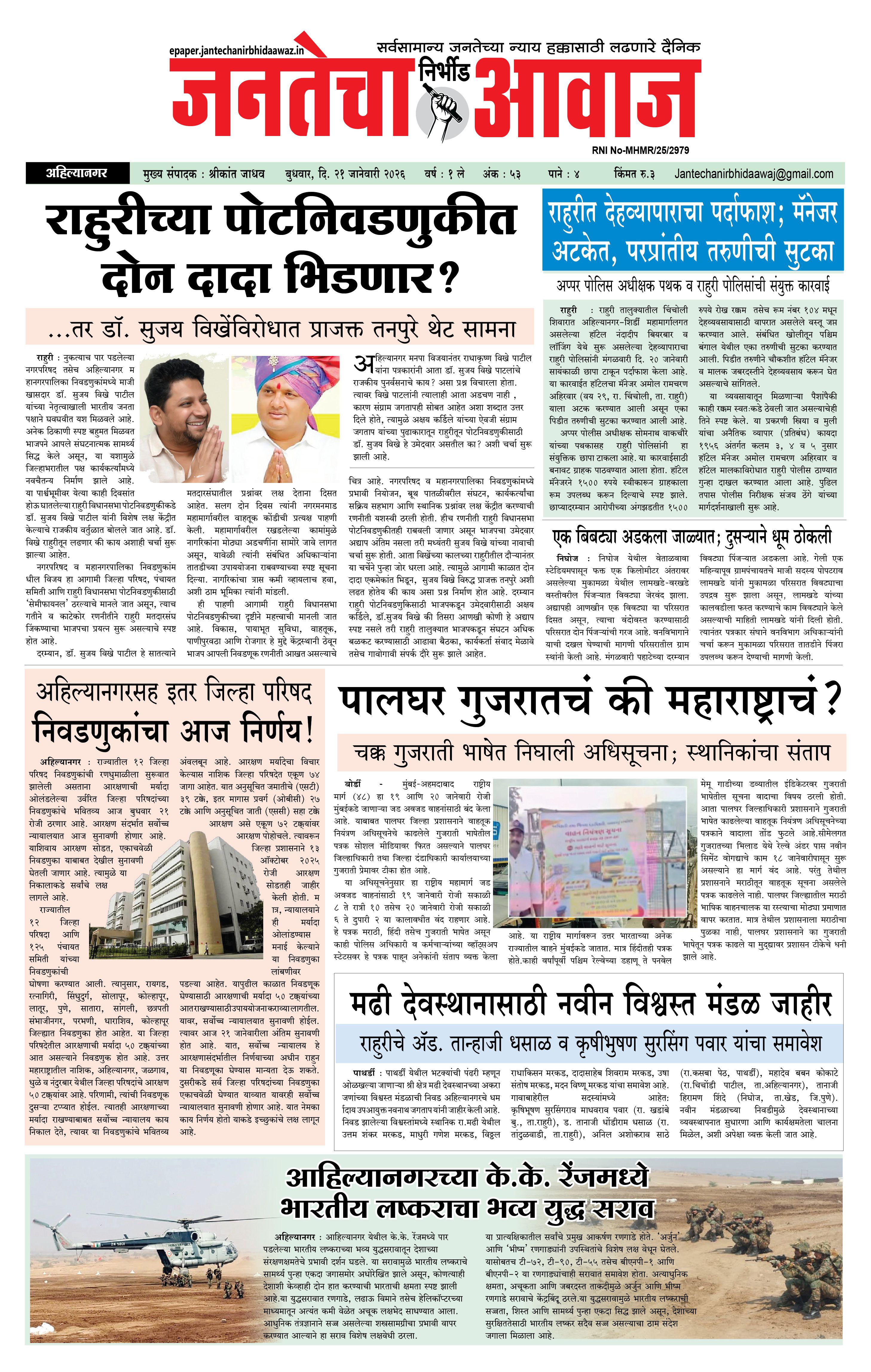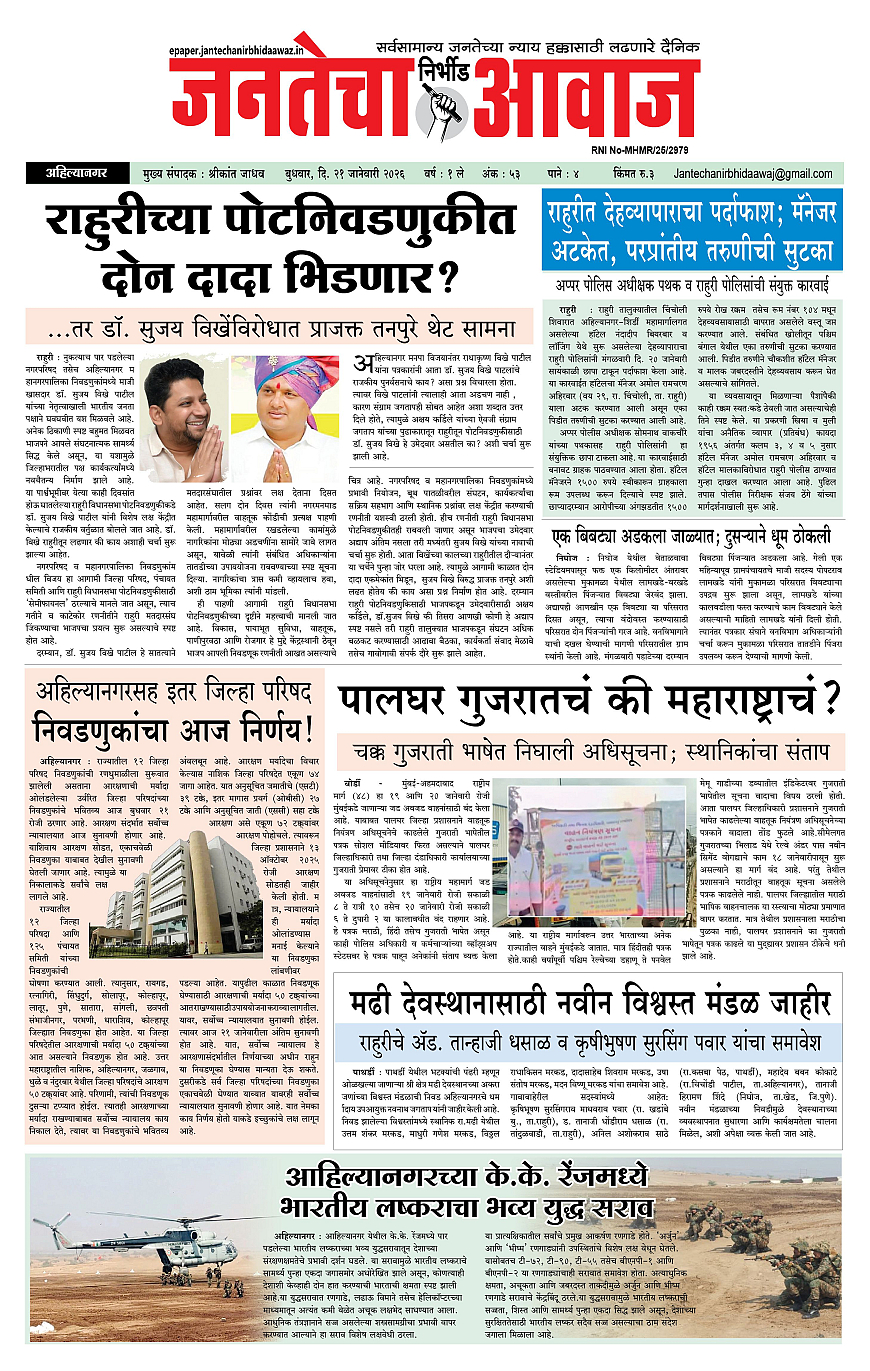 Jantecha Aawaj January 21, 2026 Ahilyanagar-maharashtra 1 2 3 4 पृष्ठ 1पृष्ठ 2पृष्ठ 3पृष्ठ 4 × Jantecha Aawaj 1-41-421-431-44 << पहला << 1 >> आखिरी >> Page no 1Page no 2Page no 3Page no 4