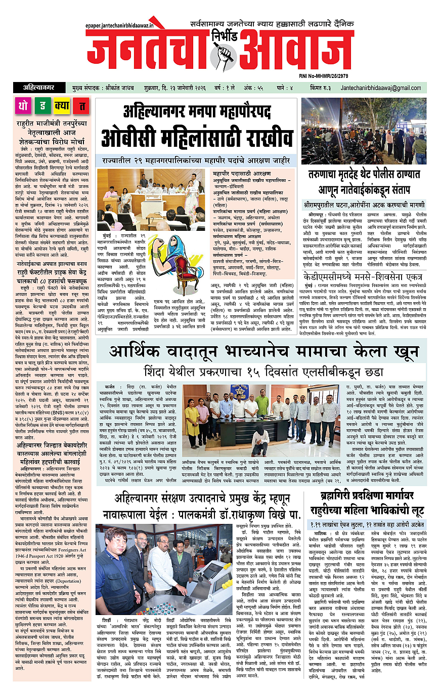Jantecha Aawaj January 23, 2026 Ahilyanagar-maharashtra 1 2 3 4 पृष्ठ 1पृष्ठ 2पृष्ठ 3पृष्ठ 4 × Jantecha Aawaj 1-41-421-431-44 << पहला << 1 >> आखिरी >> Page no 1Page no 2Page no 3Page no 4