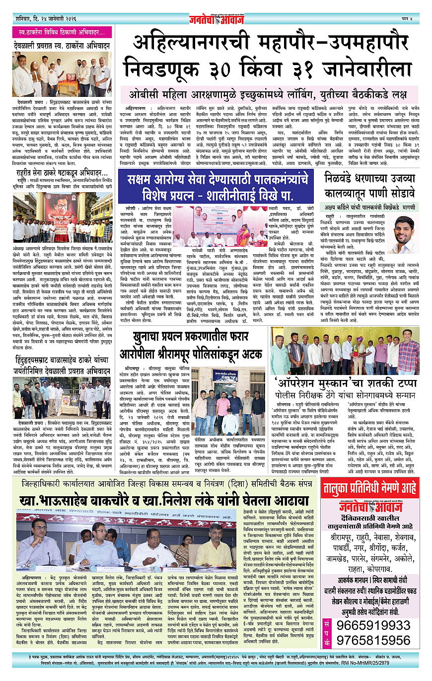 Jantecha Aawaj पृष्ठ: 4 January 24, 2026 Ahilyanagar-maharashtra 1 2 3 4 पृष्ठ 1पृष्ठ 2पृष्ठ 3पृष्ठ 4 × Jantecha Aawaj 1-41-421-431-44 << पहला << 4 >> आखिरी >> Page no 1Page no 2Page no 3Page no 4