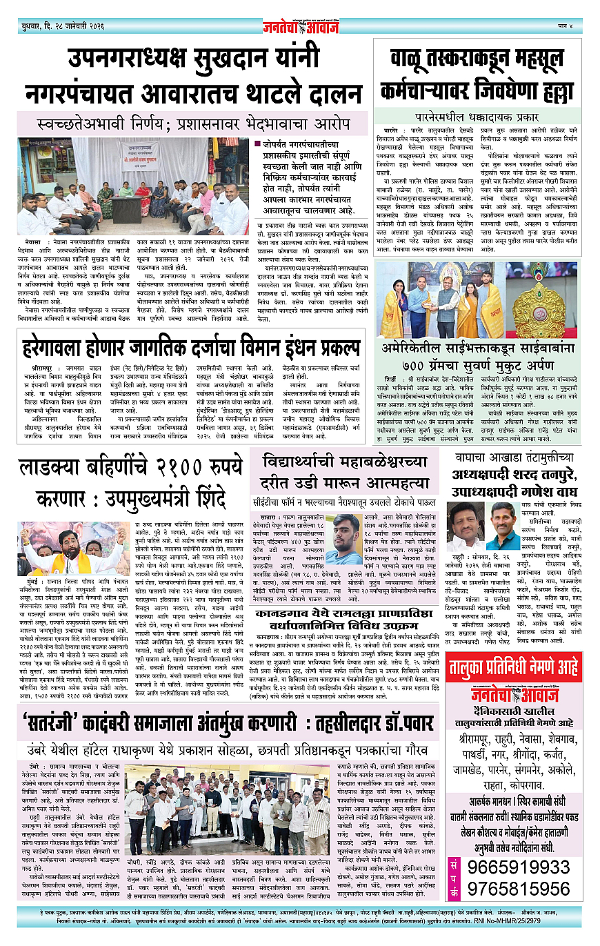 Jantecha Aawaj पृष्ठ: 4 January 28, 2026 Ahilyanagar-maharashtra 1 2 3 4 पृष्ठ 1पृष्ठ 2पृष्ठ 3पृष्ठ 4 × Jantecha Aawaj 1 Snehprakash New41 Snehprakash New421 Snehprakash New431 Snehprakash New44 << पहला << 4 >> आखिरी >> Page no 1Page no 2Page no 3Page no 4
