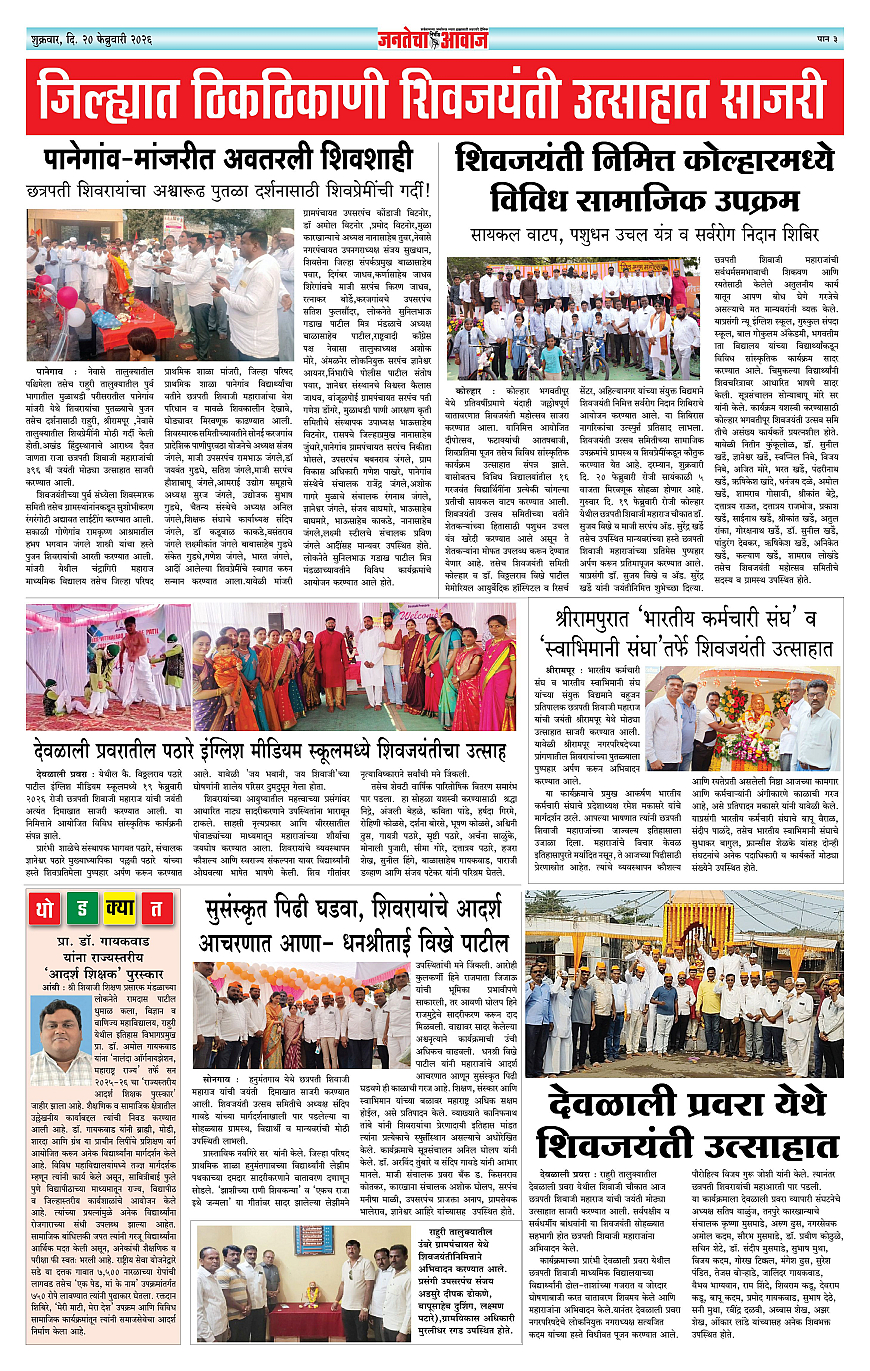 Jantecha Aawaj पृष्ठ: 3 February 20, 2026 Ahilyanagar-maharashtra 1 2 3 4 पृष्ठ 1पृष्ठ 2पृष्ठ 3पृष्ठ 4 × Jantecha Aawaj 1-41-421-431-44 << पहला << 3 >> आखिरी >> Page no 1Page no 2Page no 3Page no 4