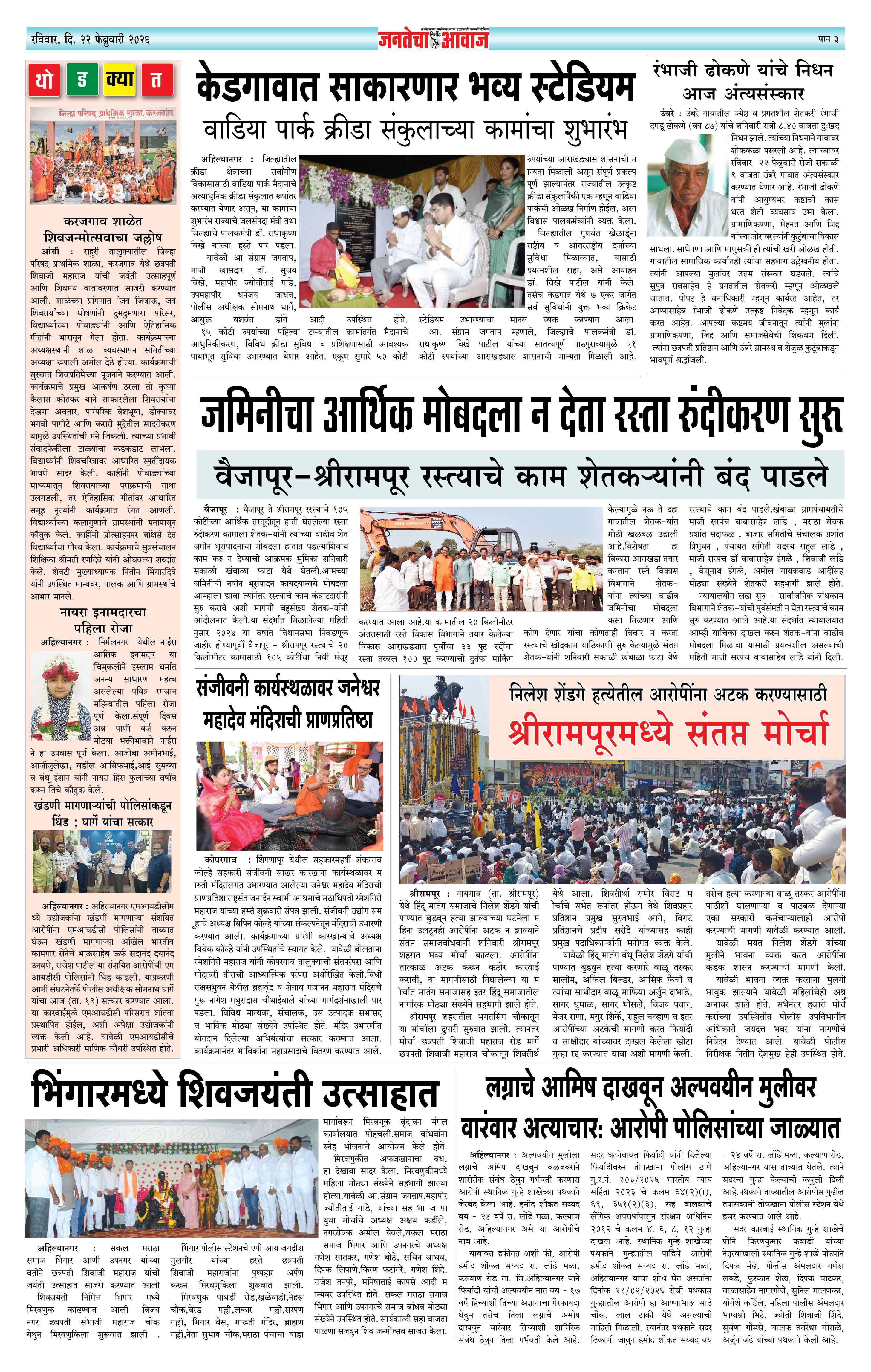 Jantecha Aawaj पृष्ठ: 3 February 22, 2026 Ahilyanagar-maharashtra 1 2 3 4 पृष्ठ 1पृष्ठ 2पृष्ठ 3पृष्ठ 4 × Jantecha Aawaj 1-41-421-431-44 << पहला << 3 >> आखिरी >> Page no 1Page no 2Page no 3Page no 4