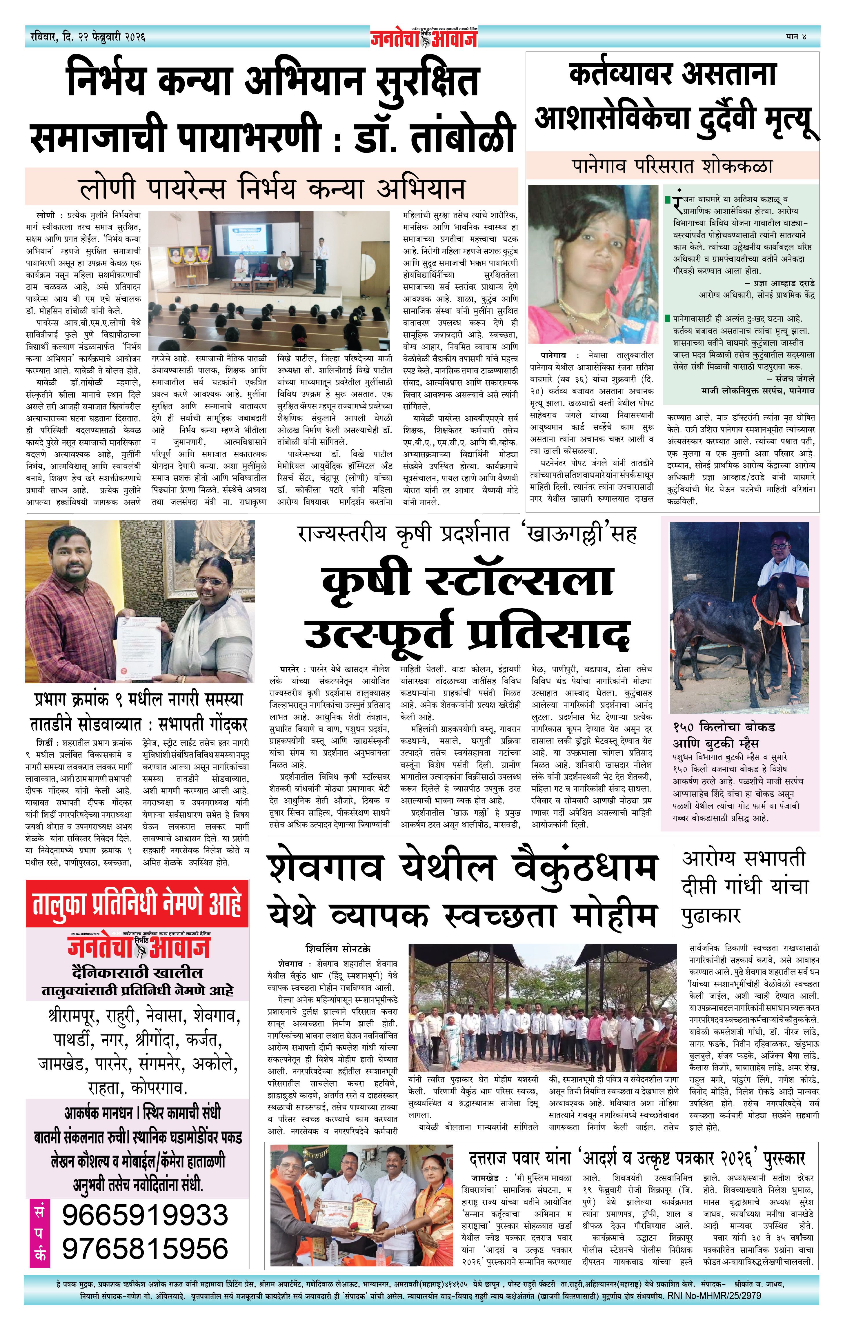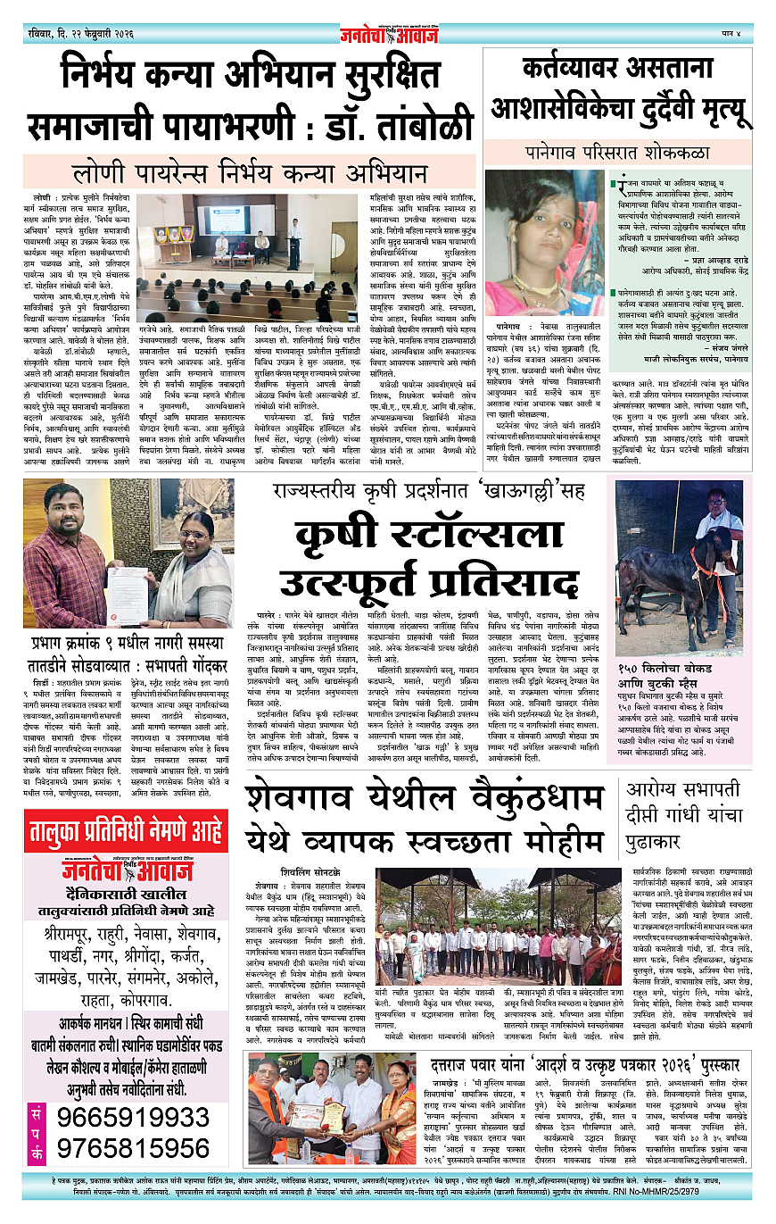 Jantecha Aawaj पृष्ठ: 4 February 22, 2026 Ahilyanagar-maharashtra 1 2 3 4 पृष्ठ 1पृष्ठ 2पृष्ठ 3पृष्ठ 4 × Jantecha Aawaj 1-41-421-431-44 << पहला << 4 >> आखिरी >> Page no 1Page no 2Page no 3Page no 4